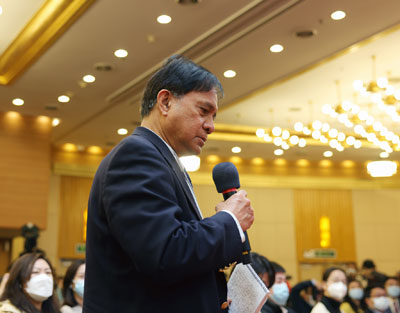 秦刚:当今世界变乱交织。世界怎么了?我们该怎么办?人类再次站在历史的十字路口。习近平主席从世界、历史和人类的高度指明了全球治理的人间正道。新时代十年,习近平主席相继提出了一系列重大倡议和主张,包括构建人类命运共同体、共建“一带一路”、全人类共同价值、全球发展倡议、全球安全倡议等,这些理念的核心,就是世界各国相互依存,人类命运与共,国际社会要团结合作。团结合作可以战胜新冠疫情,可以应对气候变化,可以化解和平赤字、发展赤字、安全赤字、治理赤字,建设持久和平、普遍安全、共同繁荣、开放包容、清洁美丽的世界。