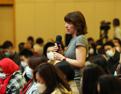 《中国日报》记者:我们报社开展了“你的关注,外长来答”的征集活动。很多青年人关注中国国际形象和国际话语权问题。您认为应当如何向国际社会展现真实、立体、全面的中国?青年人为提升中国国际话语权可以发挥怎样的作用?